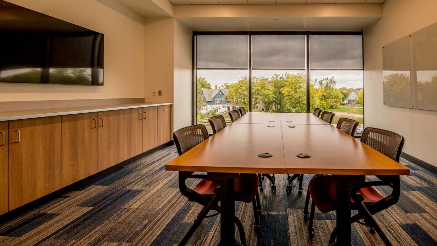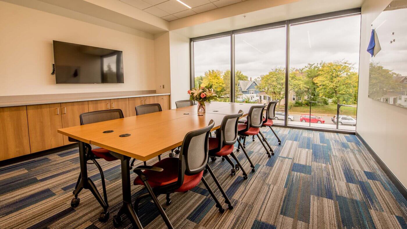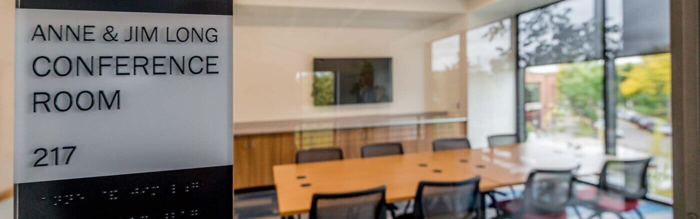 The Anne & Jim Long Conference Room, located on the second level of the Capri, is a lovely, accommodating place to meet, with break space just outside the room. A room-size window brings natural warmth and light into the room.