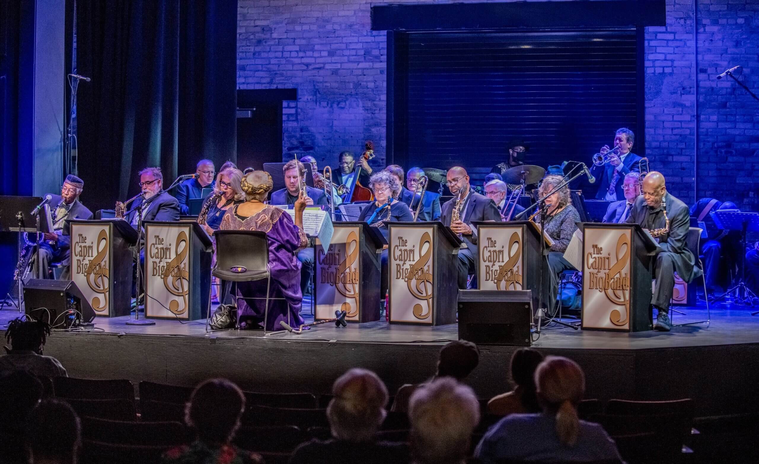 The Capri Big Band gathers biweekly at the Capri Theater, fostering musical opportunities and mentorship in the community. This ensemble brings together jazz enthusiasts of all ages and experience levels to preserve the joy of timeless jazz music. While these rehearsals are not open to the public, musicians with a passion for jazz are invited to participate.