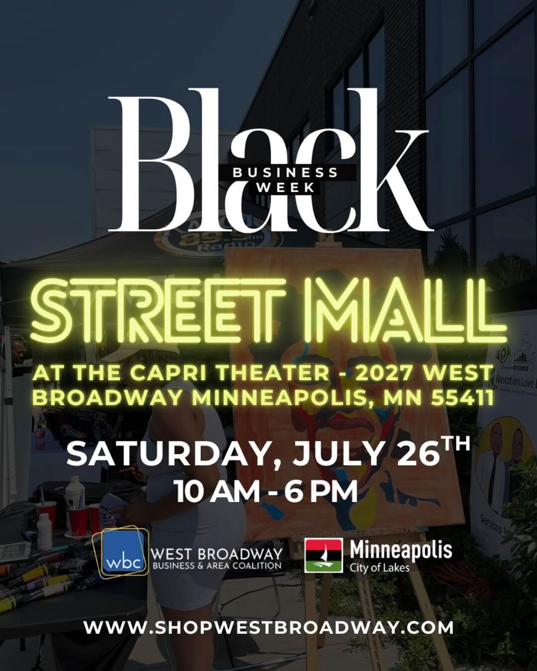 Join us on Saturday, July 26th, as we culminate Minneapolis’s Black Business Week with the vibrant Black Business Week Street Mall at The Capri Theater.