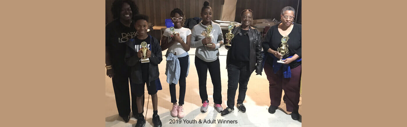 Black Storytellers Alliance (BSA) has 1st, 2nd and 3rd place trophies in both the youth and adult categories. (2019 winners in photo, above.)