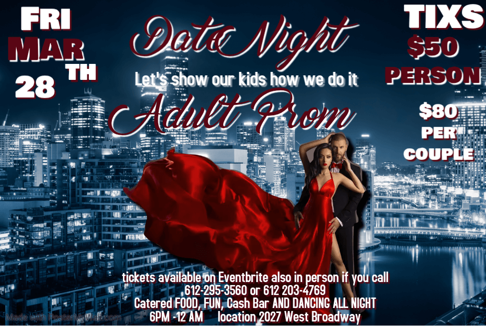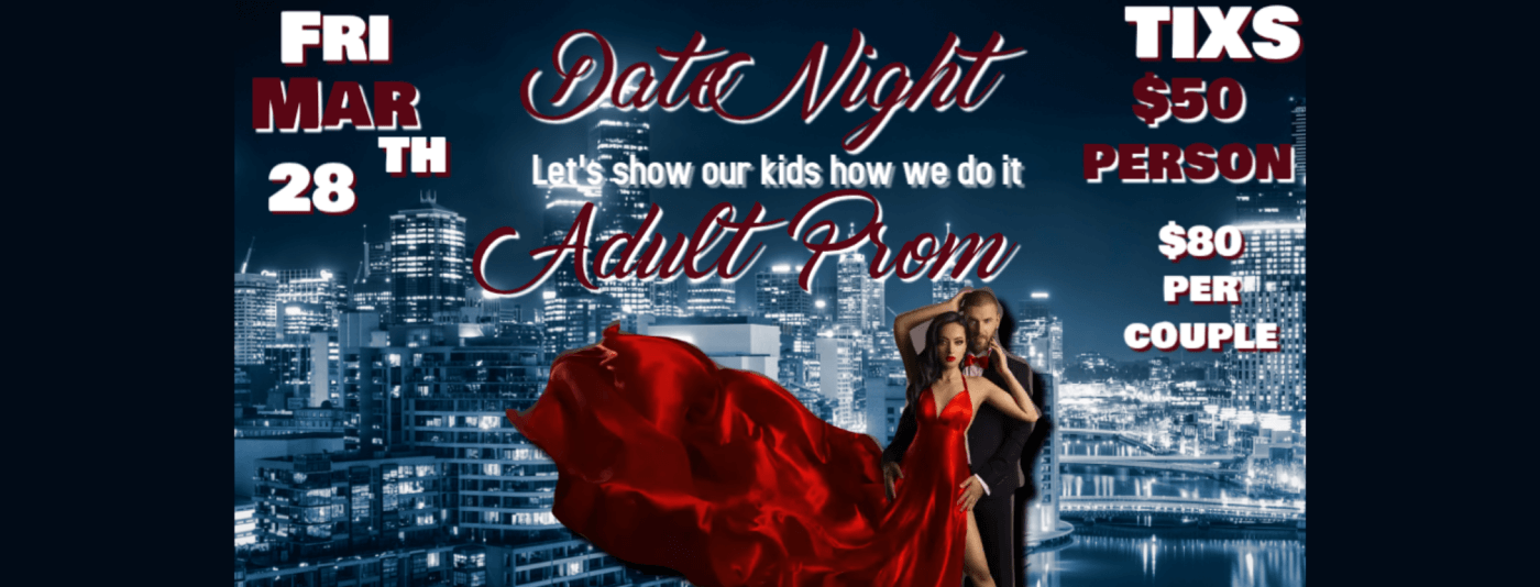 Do you want to relive prom? Or maybe you’ve never been and would like to go?  Well, here’s your opportunity: Our “Date Night Adult Prom.”