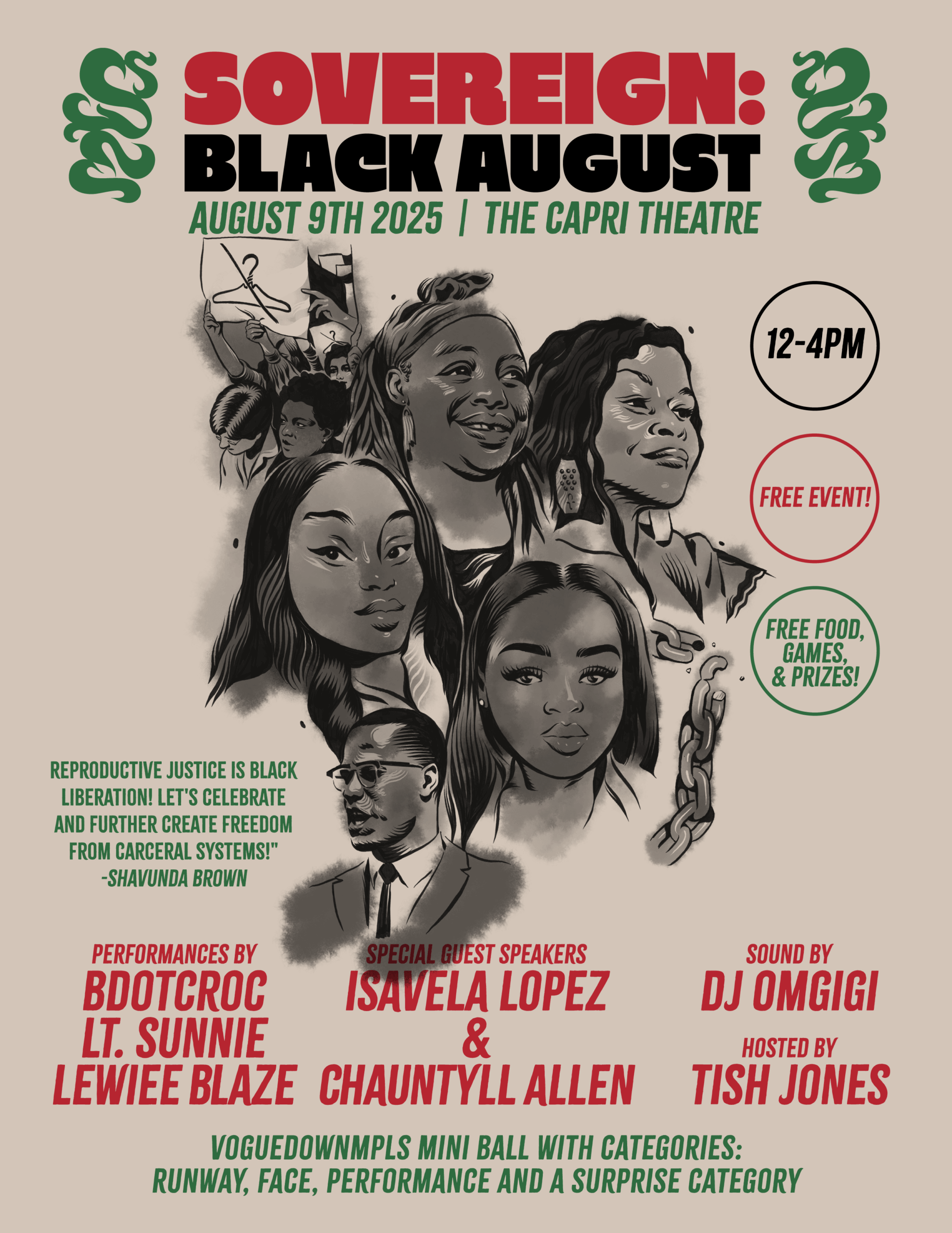 Sovereign: Black August is an upliftment of the intersections between reproductive justice and Black liberation and draws on the traditions of Black prison abolitionists and freedom fighters against reproductive oppression. It’s a call to further create freedom from carceral systems.