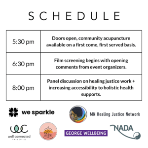 Hear from representatives of the MN Healing Justice Network, The Zen Bin and NADA, along with the film director Mia Donovan, and Juan Cortez who was featured in the film.