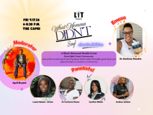 Join in and celebrate Black Maternal Health week with an intimate evening featuring a powerful panel discussion, spoken word, music, food, and “kitchen table talk” designed for honest, intergenerational dialogue. Together, we’ll explore how lived experience, family stories, and societal messages shape access to care—and how we can advocate for ALL Black women (cis, trans, and nonbinary).