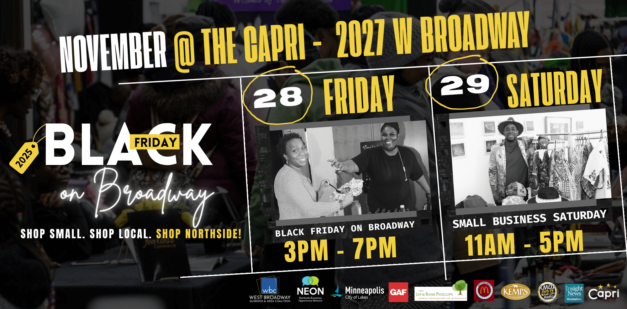 Shop Small. Shop Local-Owned. Shop Northside! Black Friday, November 28 | 3 PM – 7 PM Small Business Saturday, November 29 | 11 AM – 5 PM Get ready for one of North Minneapolis’s most anticipated annual holiday shopping experience! Hosted by the West Broadway Business and Area Coalition (WBC) and Northside Economic Opportunity Network […]